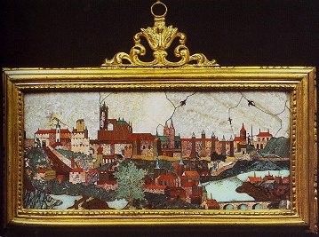 zuweilen als Wandbilder gefertigt, zuweilen als Intarsien in Möbel und Kassetten.